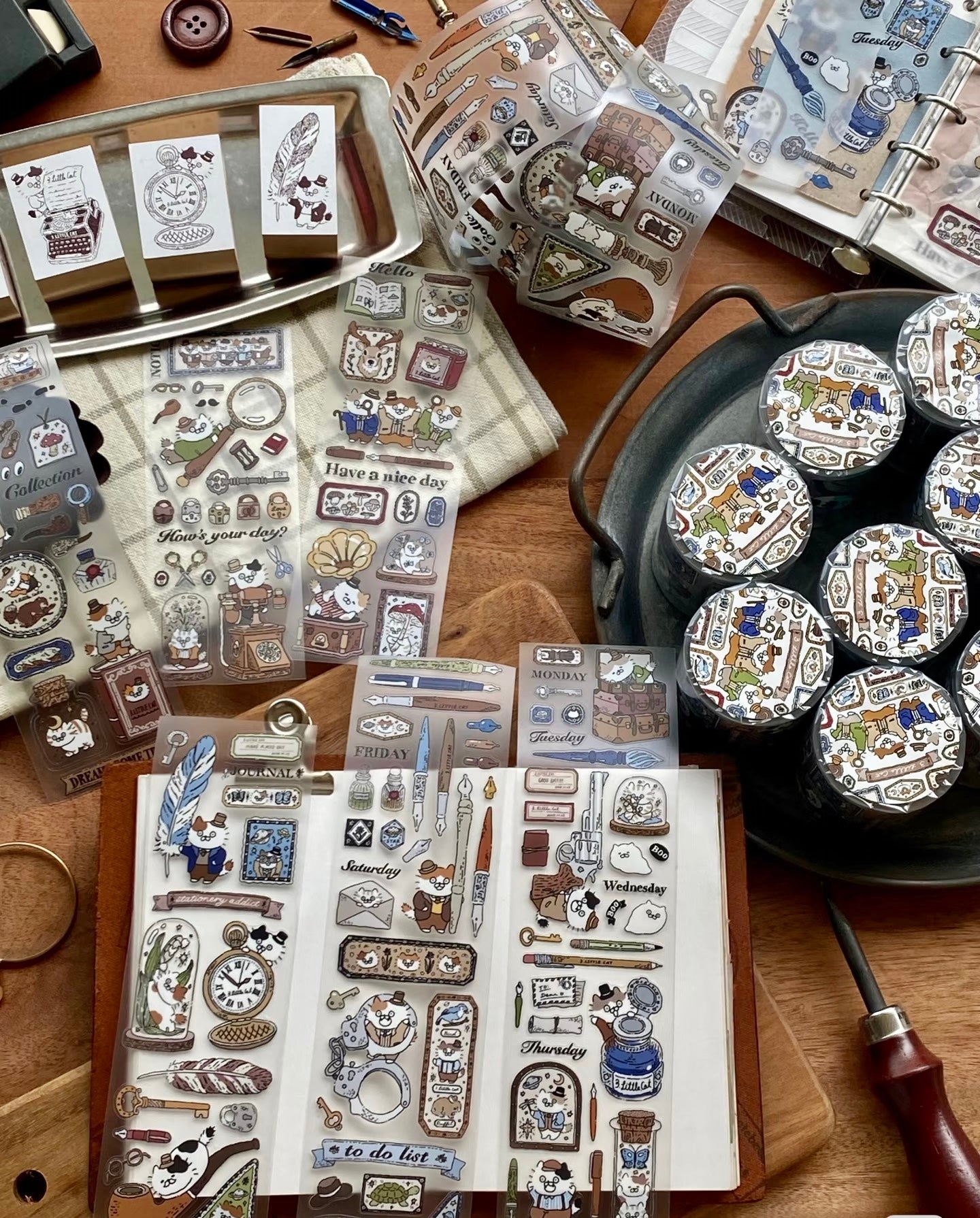 NEW! 3 Little Cat - Vintage Detective Agency | Kiss-cut | 5cm PET Tape | Release Paper | 5M