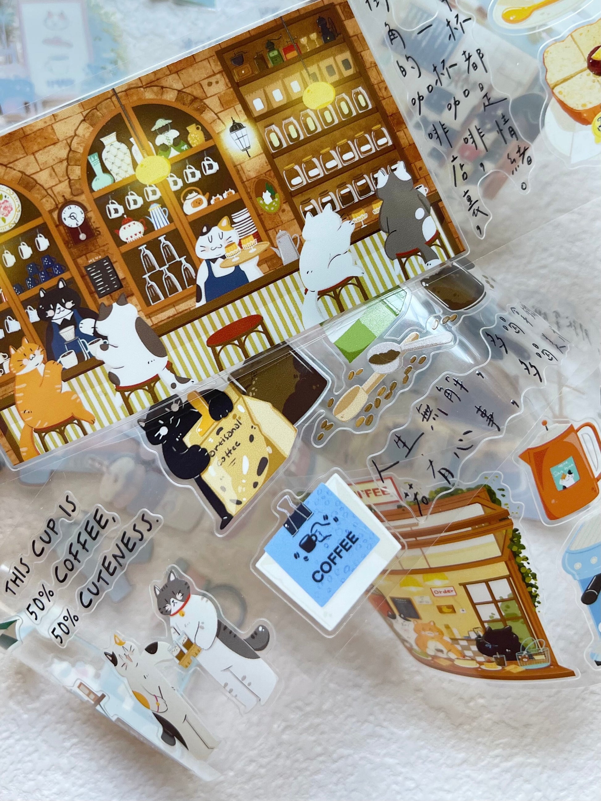 - Material: kiss-cut, glossy PET, washi paper, release paper and adhesive