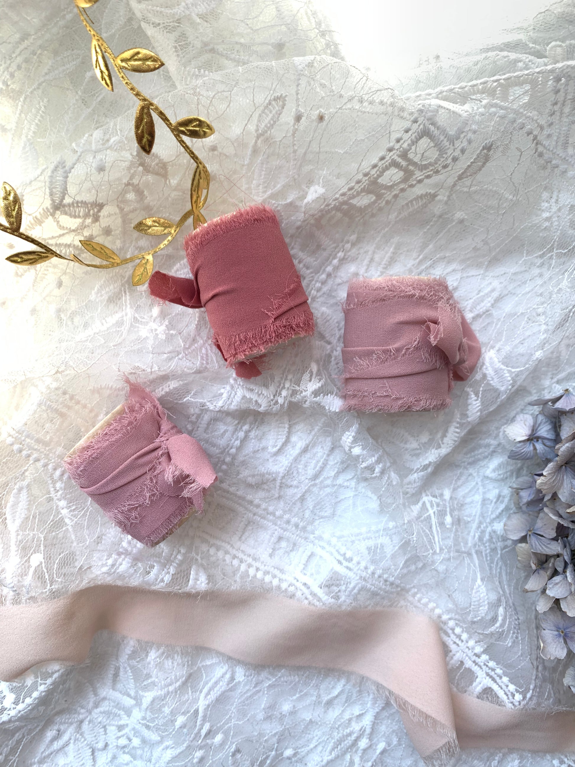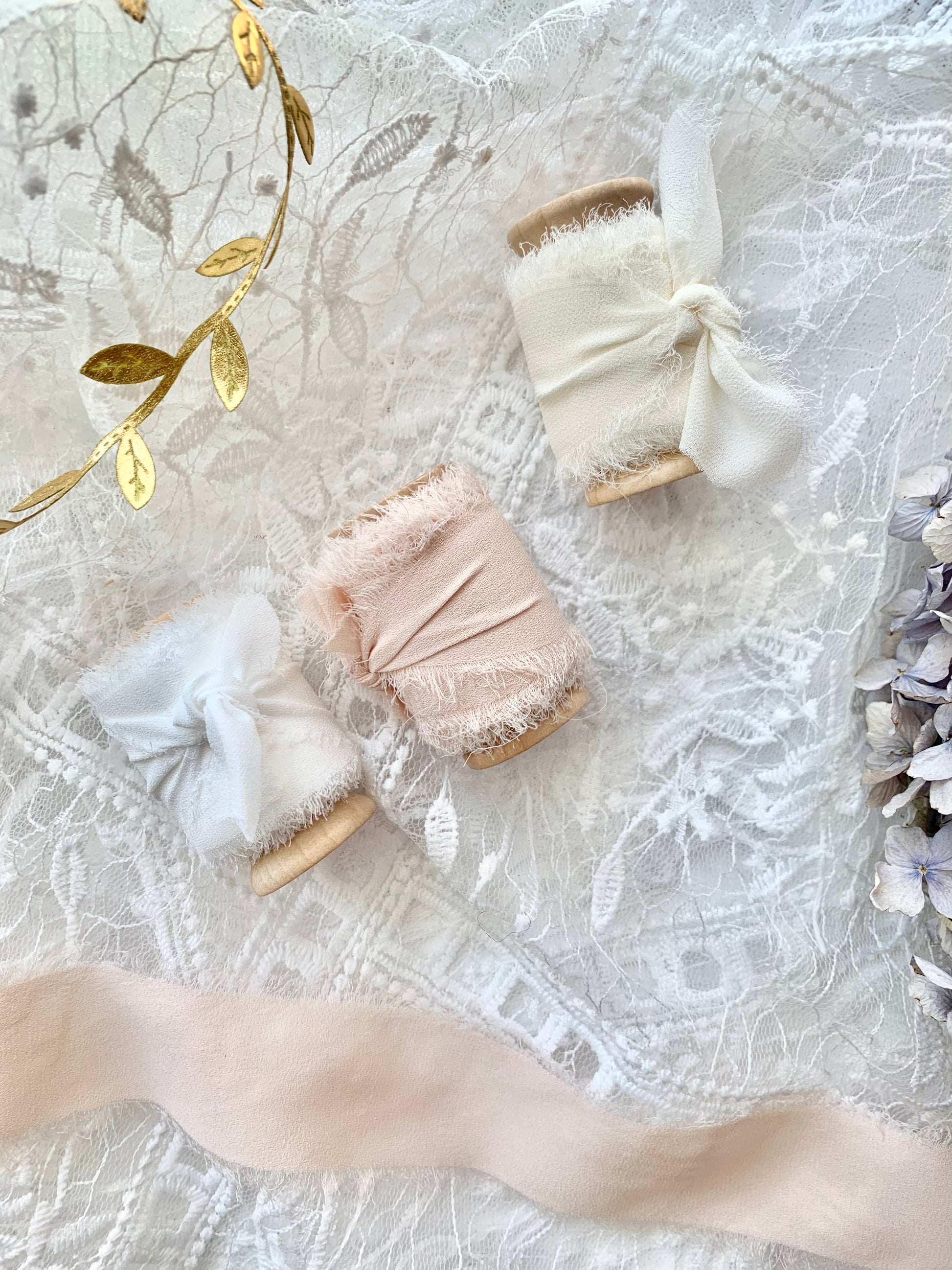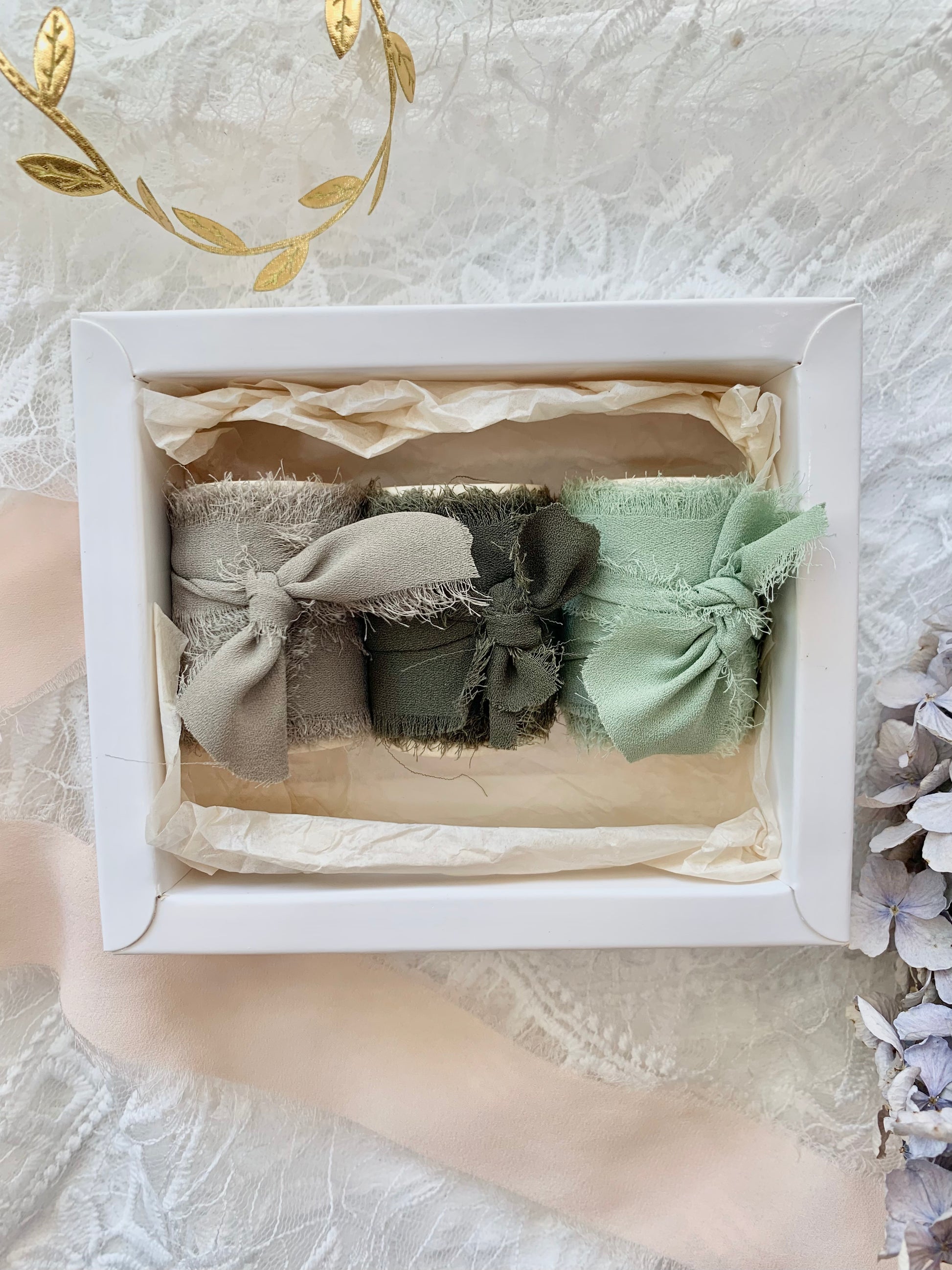 Chiffon Silk Ribbons | 3 Rolls with Wood Spool in Box | Journaling Accessories