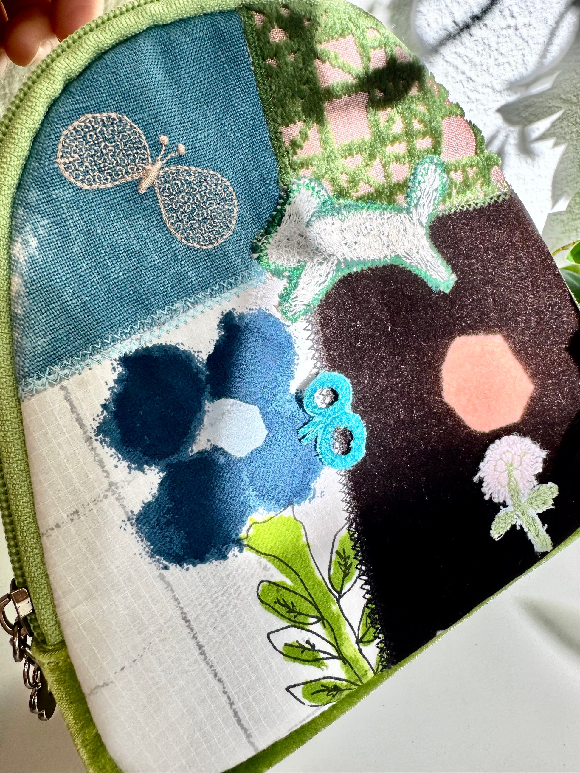 - green patchwork bag ( Please note: To achieve balanced color coordination, some solid-color fabrics are used and are not mina perhonen fabrics.)