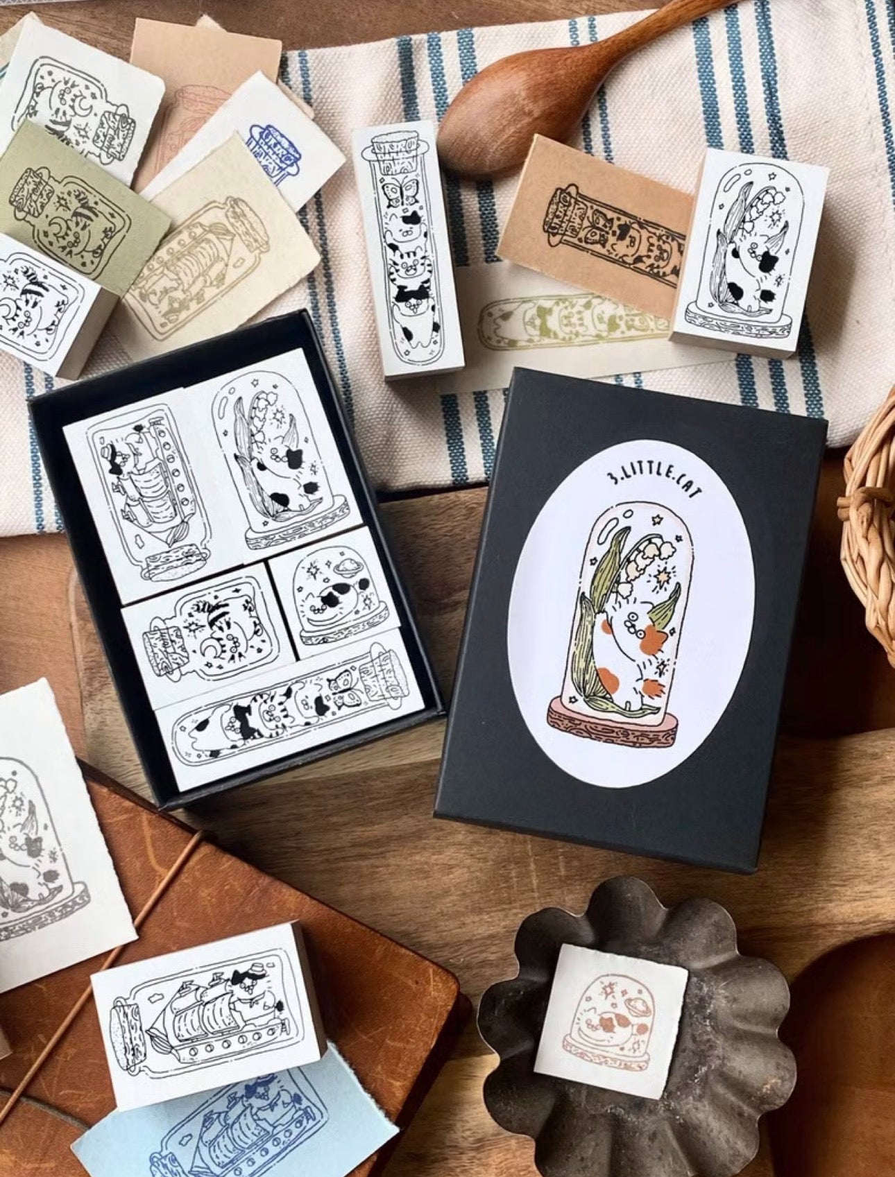 NEW! 3 Little Cat - Cat Glass Cup | 5pcs Rubber Stamp Set