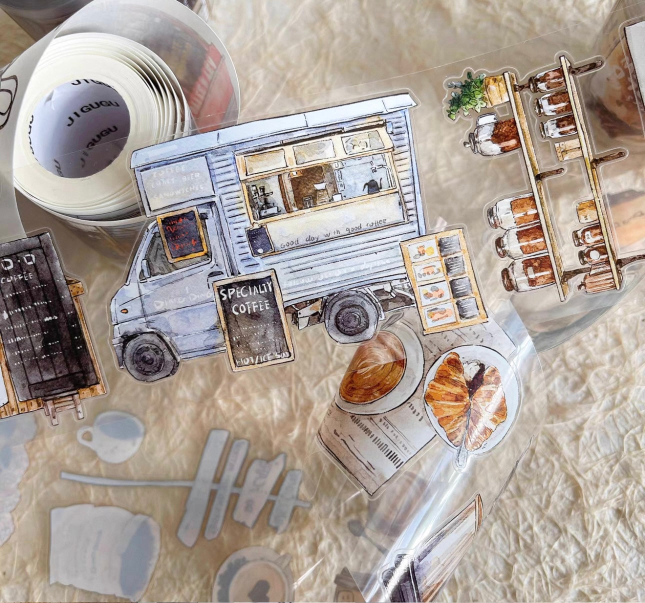 NEW! DingDing - A50 Coffee Time | Kiss-cut | 6.5cm PET Tape | Release Paper | 5M