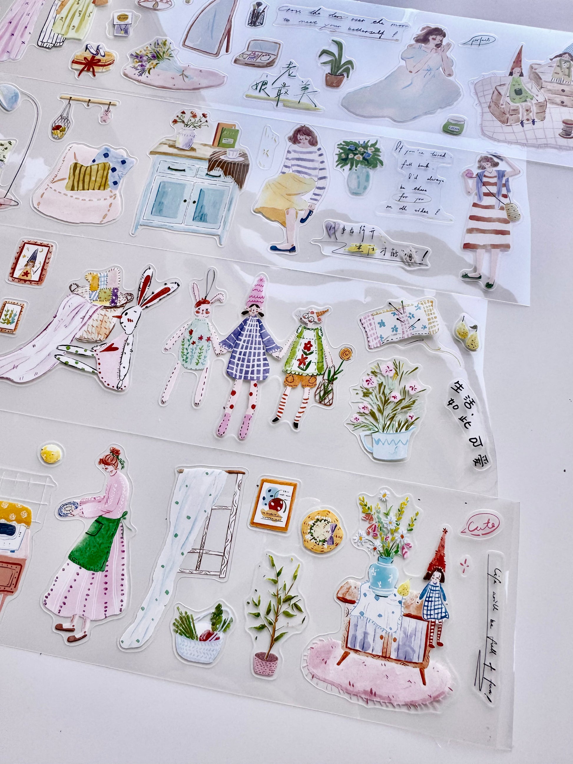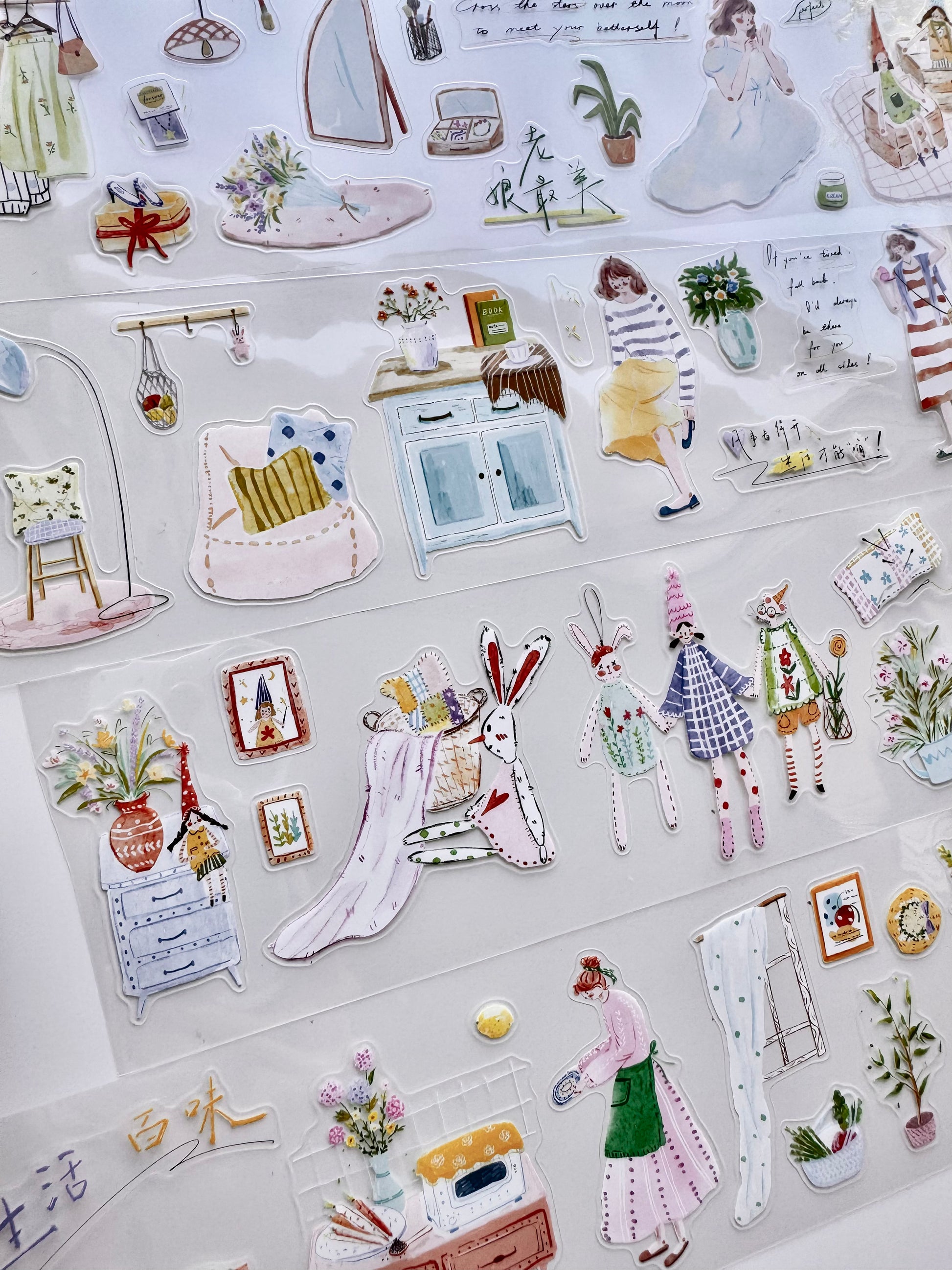 NEW! Lynn Illustration - A Girl and Her Dolls | Kiss-cut | 7cm PET Tape | Release Paper | 5M