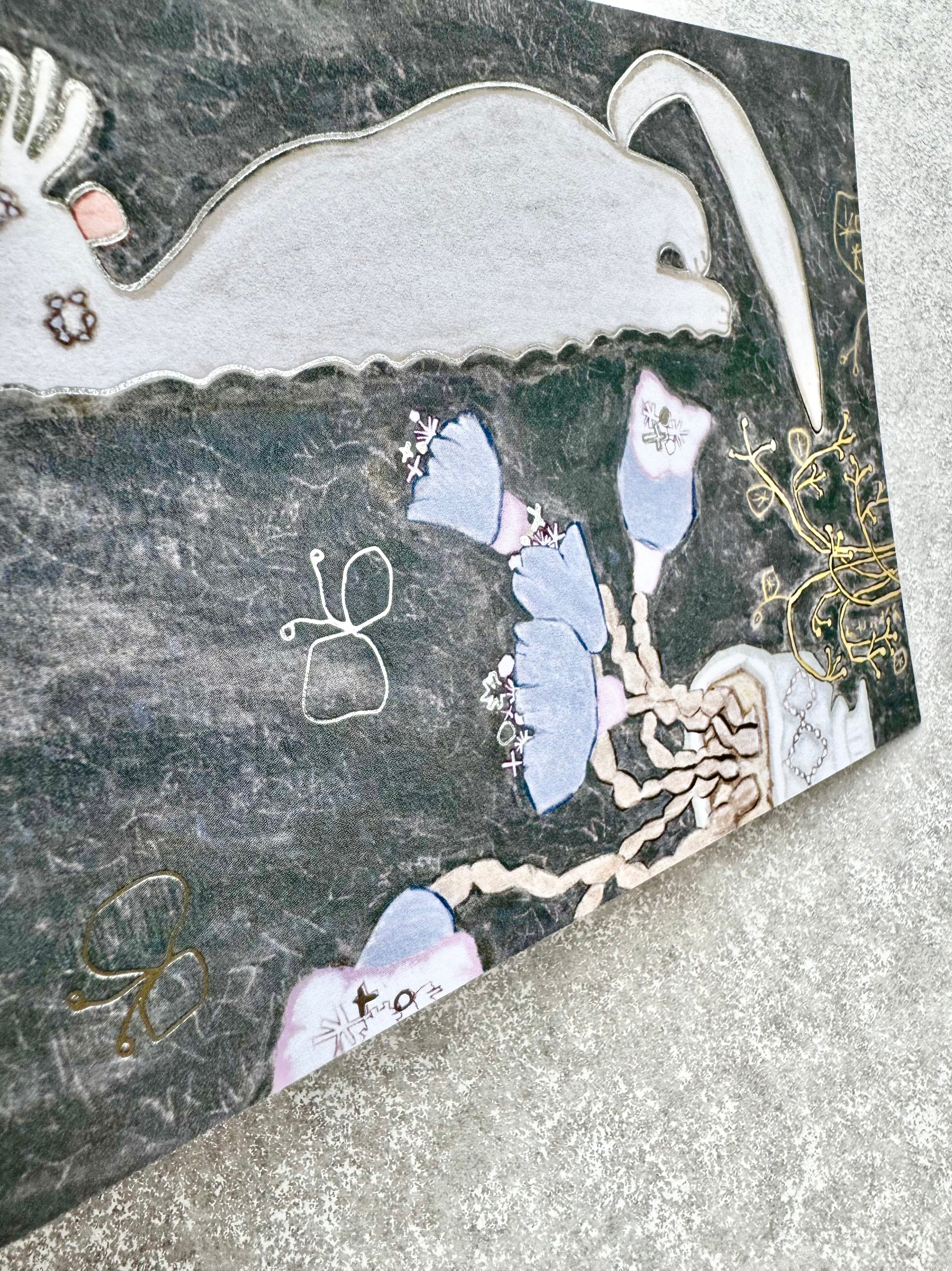 NEW! Misshoegg - A cat by the flower pot | Silver Foil | Postcard | Journaling Accessories