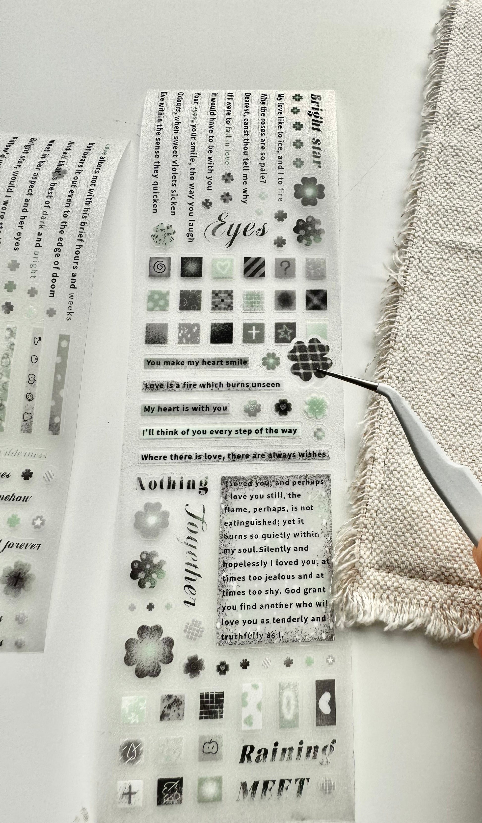 - Material: kiss-cut, glitter matte PET, release paper and adhesive