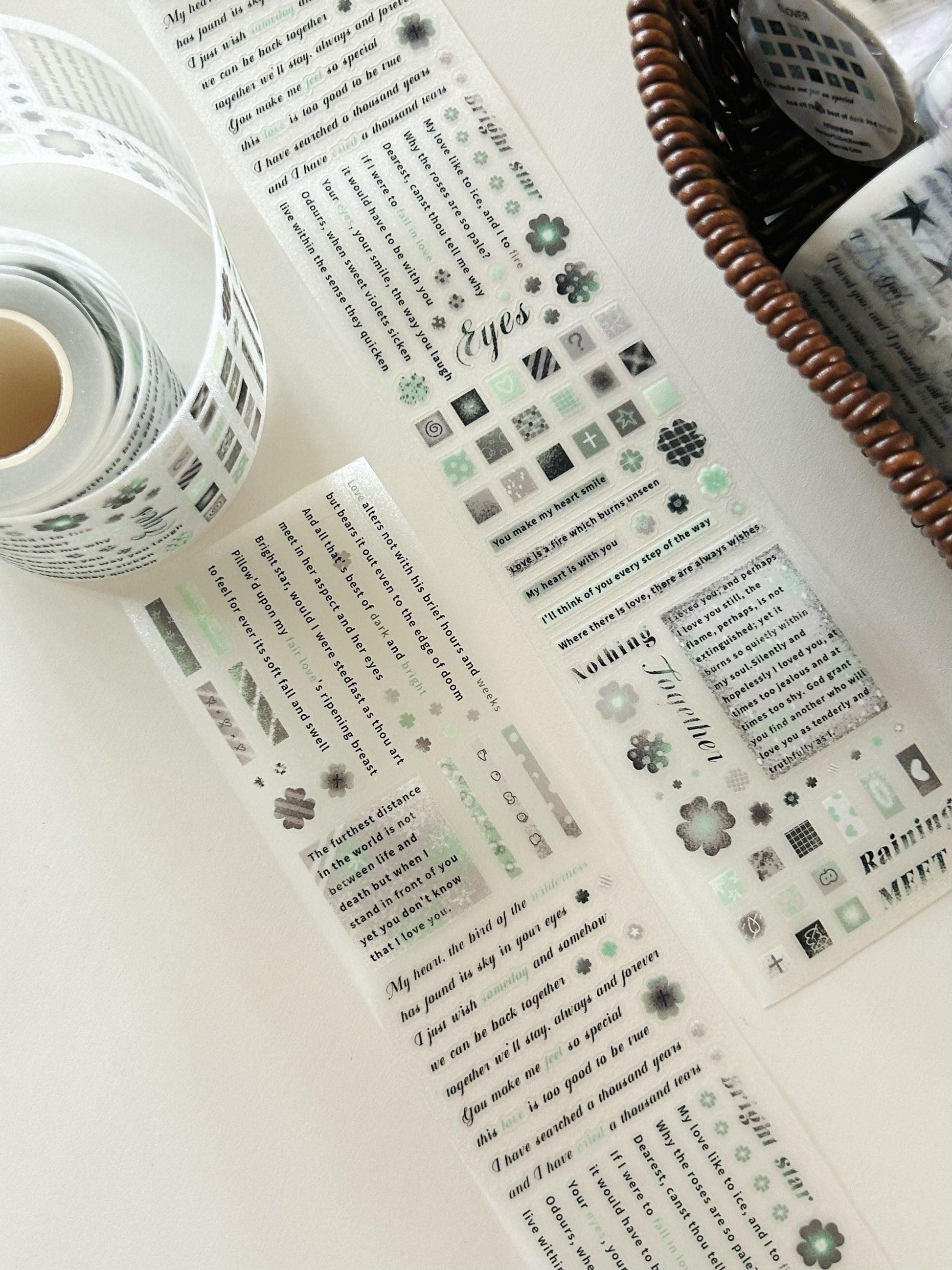 NEW! Paper Moss - Text-green | 6cm Kiss-cut Glitter PET Tape | Release Paper | 5.25M