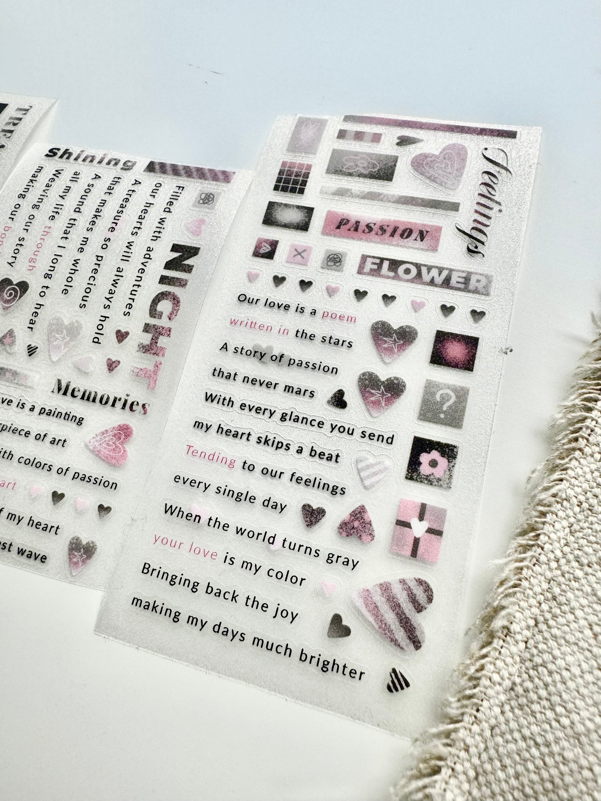 - Material: kiss-cut, glitter matte PET, release paper and adhesive