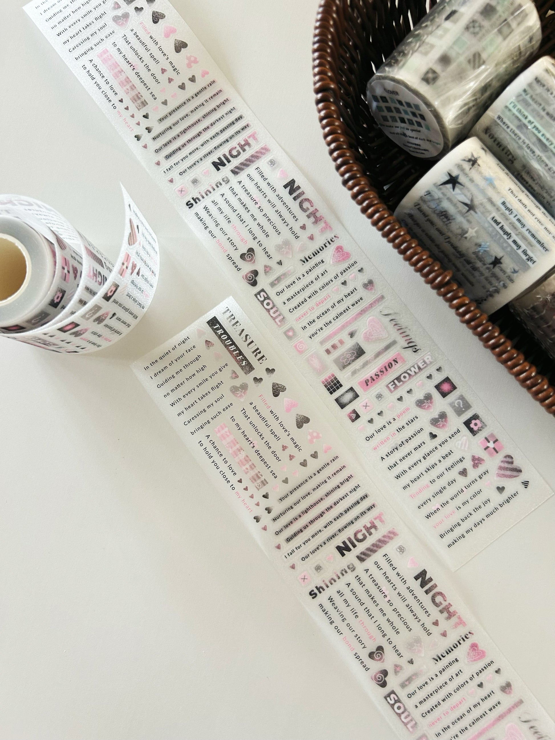NEW! Paper Moss - Text-pink | 6cm Kiss-cut Glitter PET Tape | Release Paper | 5.25M