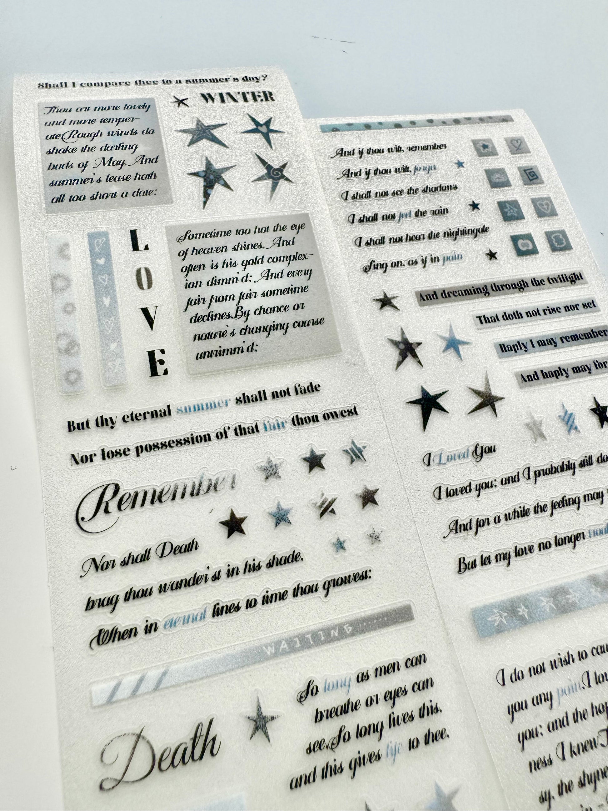 - Material: kiss-cut, glitter matte PET, release paper and adhesive