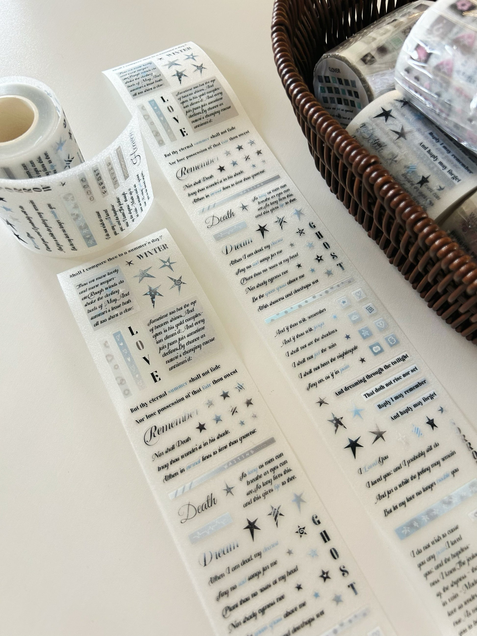 NEW! Paper Moss - Text-blue | 6cm Kiss-cut Glitter PET Tape | Release Paper | 5.25M