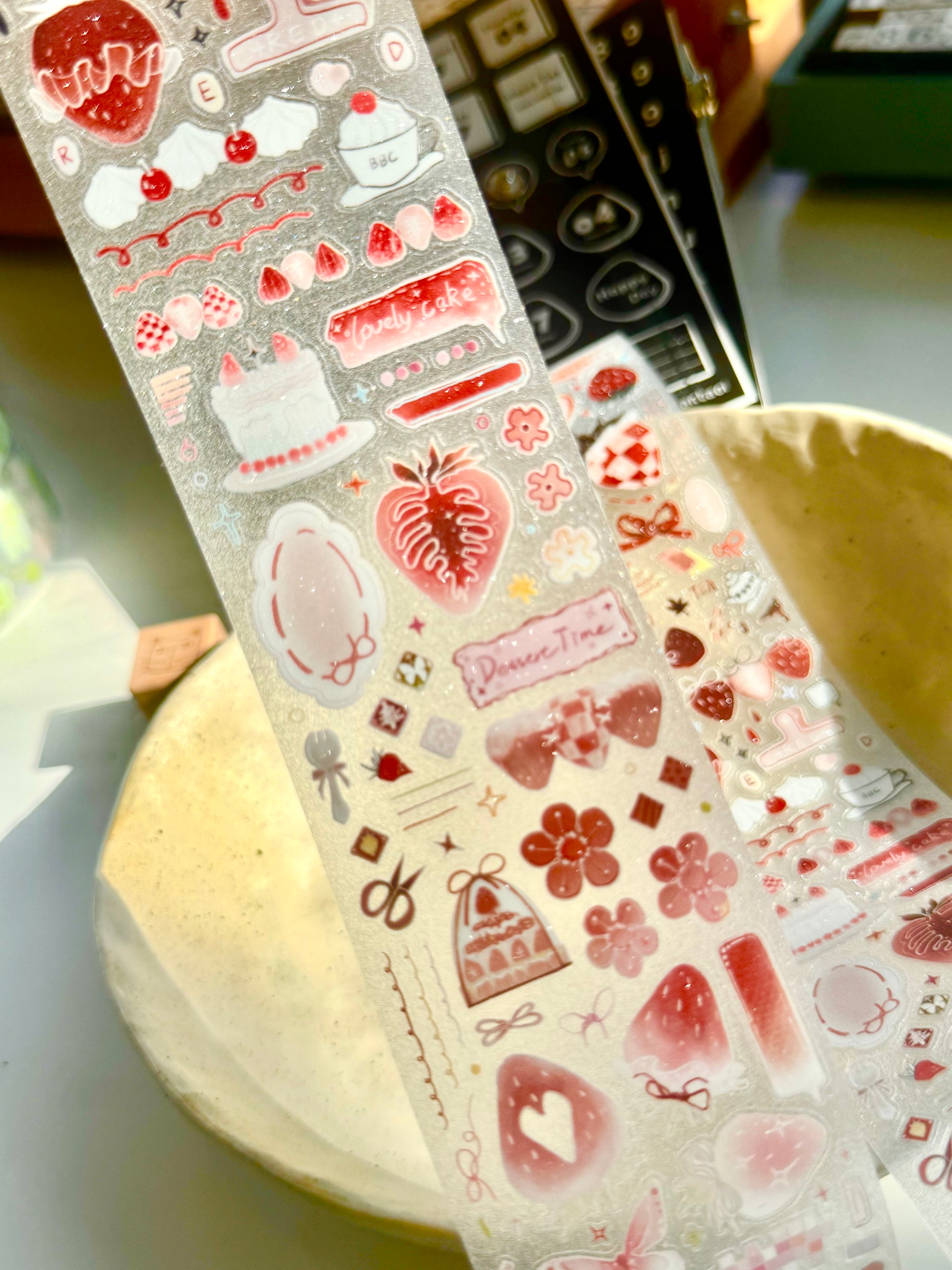 NEW! Wines - Strawberry Cheesecake | Kiss-cut | 5cm Glitter PET Tape | Release Paper | 5.25M