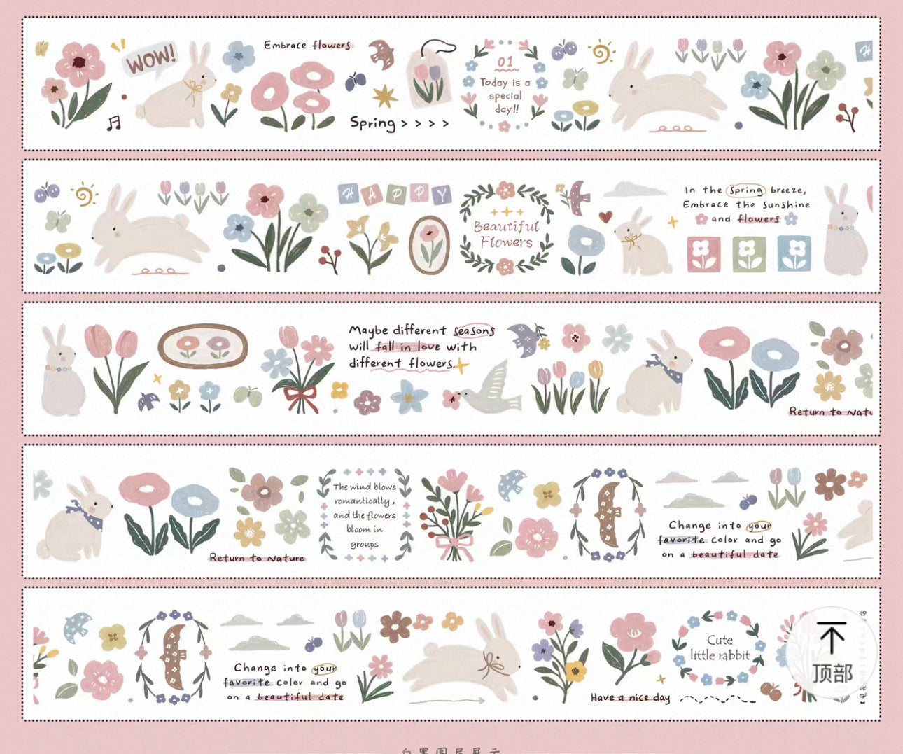 NEW! Yier Studio - Rabbit Flower Story | Kiss-cut | 3.5cm Tape | Release Paper | 5M