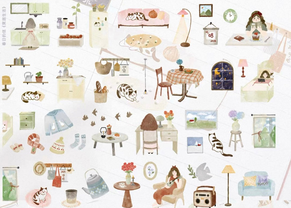 NEW! Jennyuanzi Studio - My Little Cozy World | Kiss-cut | 5cm Tape | Release Paper | 5M