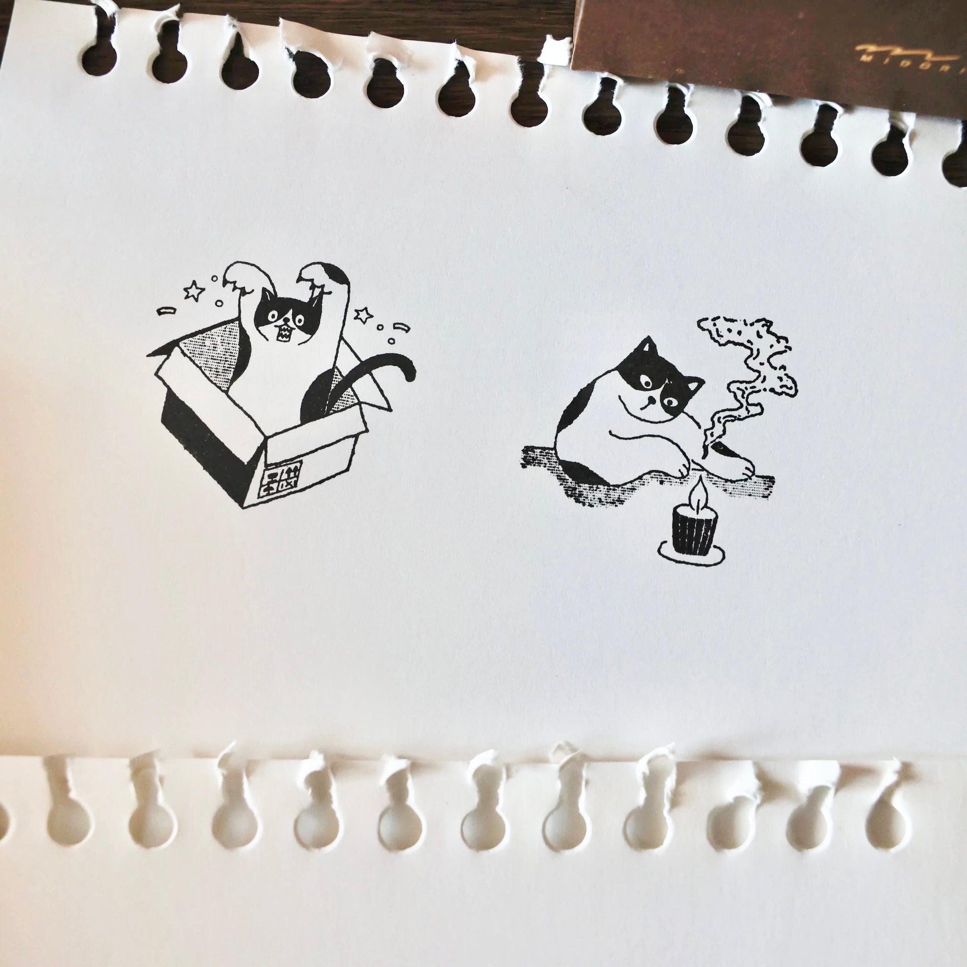 Two Raccoons - Everyday Cat Drama | Wooden Box | 4pcs Rubber Stamp Set