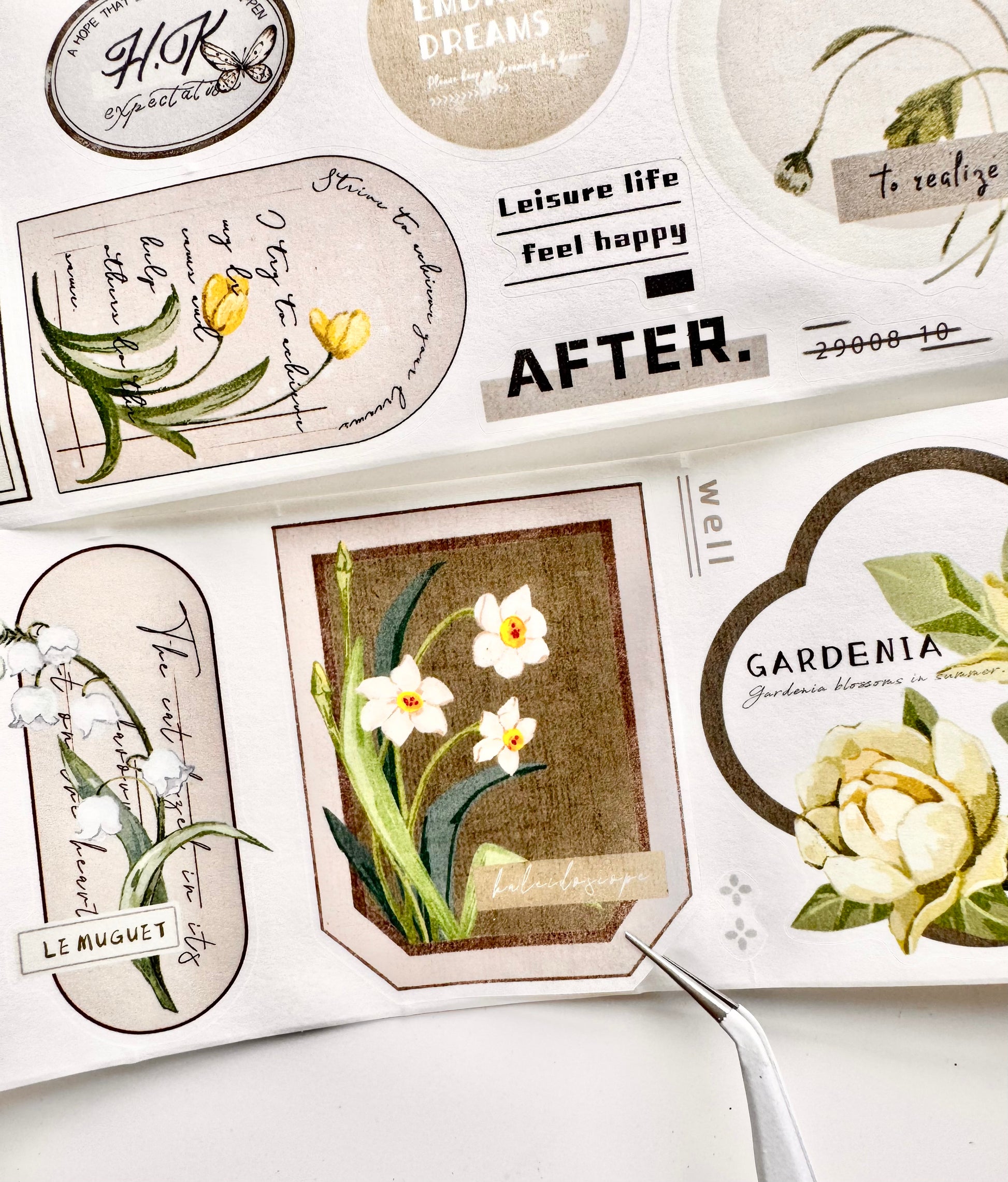 - Material: kiss-cut, washi paper, release paper and adhesive
